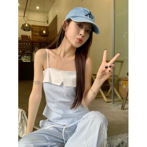 فستان نسائي للربيع والصيف بدون أكمام بحمالات المشاهير
