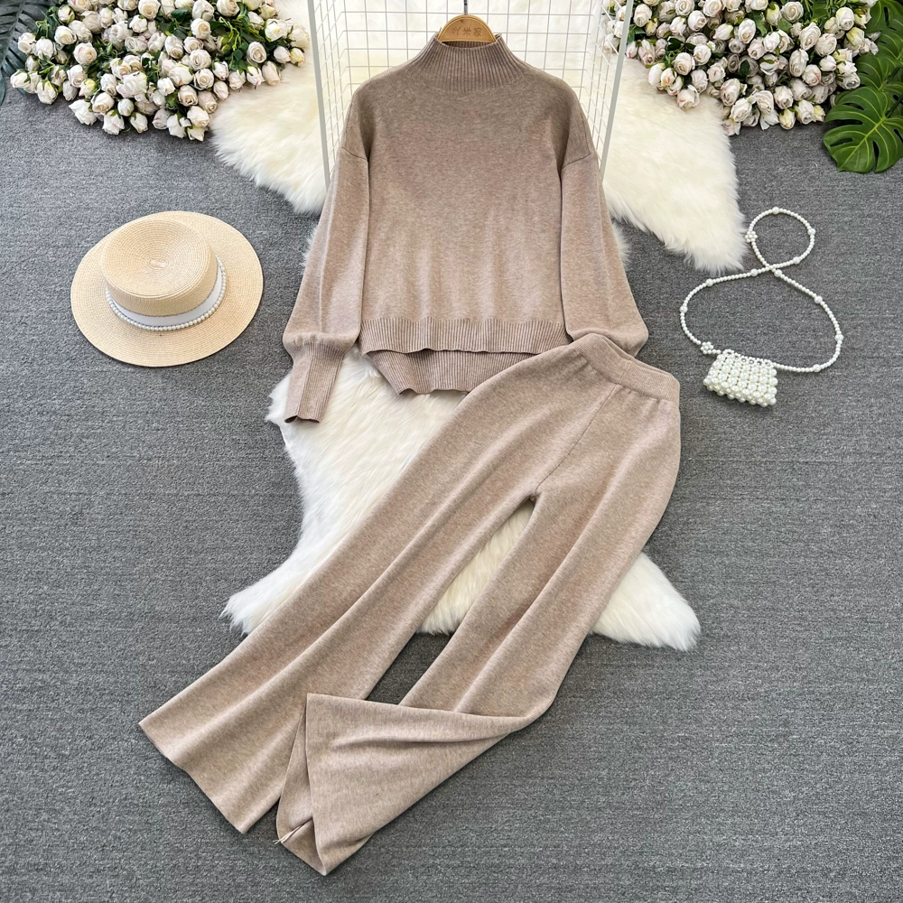 بنطال كاجوال محبوك مخملي عالي الخصر يصل إلى الأرض وواسع الساق