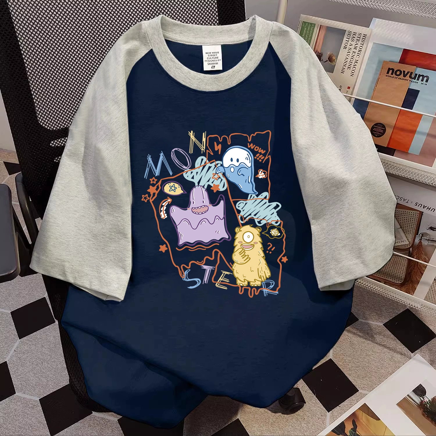 تيشيرت M2 خارجي من الجاكار المجوف برقبة دائرية متعددة الألوان
