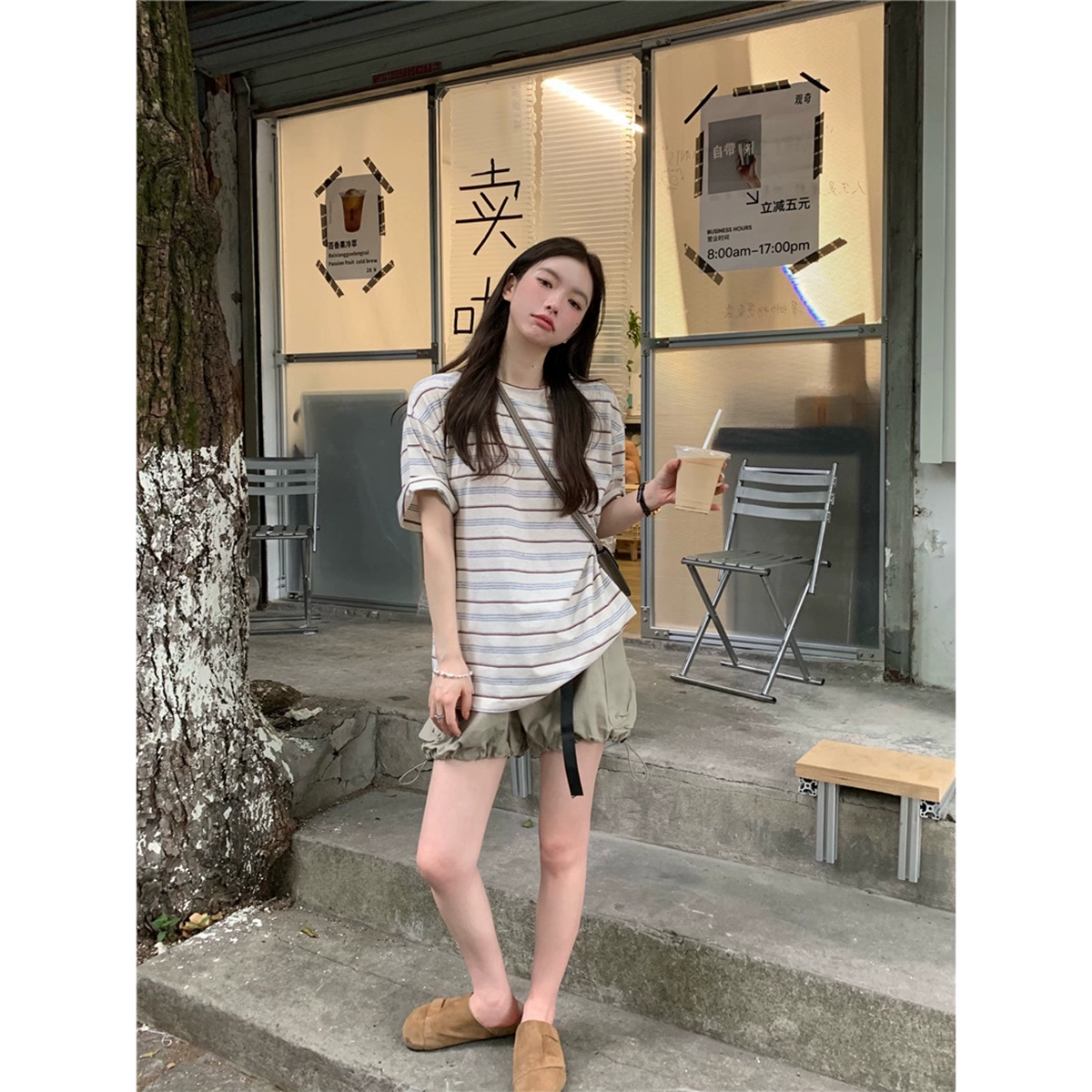 المرأة تي شيرت اللون مخطط عارضة الطالب اعتصامات السترة