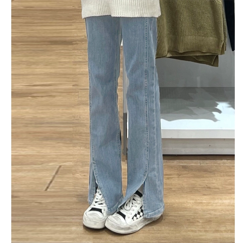 جينز أزرق فاتح للربيع والصيف بخصر عالٍ وواسع الساق