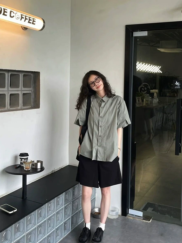 قميص بولو ياباني نسائي صيفي فضفاض كاجوال بسيط