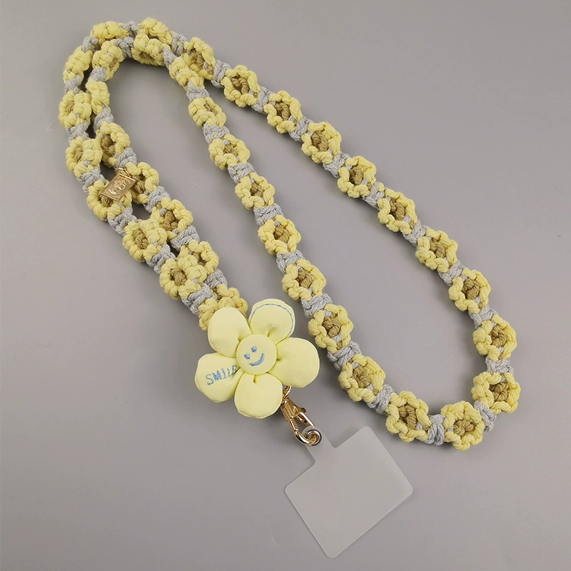 سلسلة الهاتف المحمول الحبل القطن حبل مضفر الموضة الأدبية حزام طويل ديزي حقيبة سلسلة معلقة الرقبة سلسلة الهاتف المحمول حبل