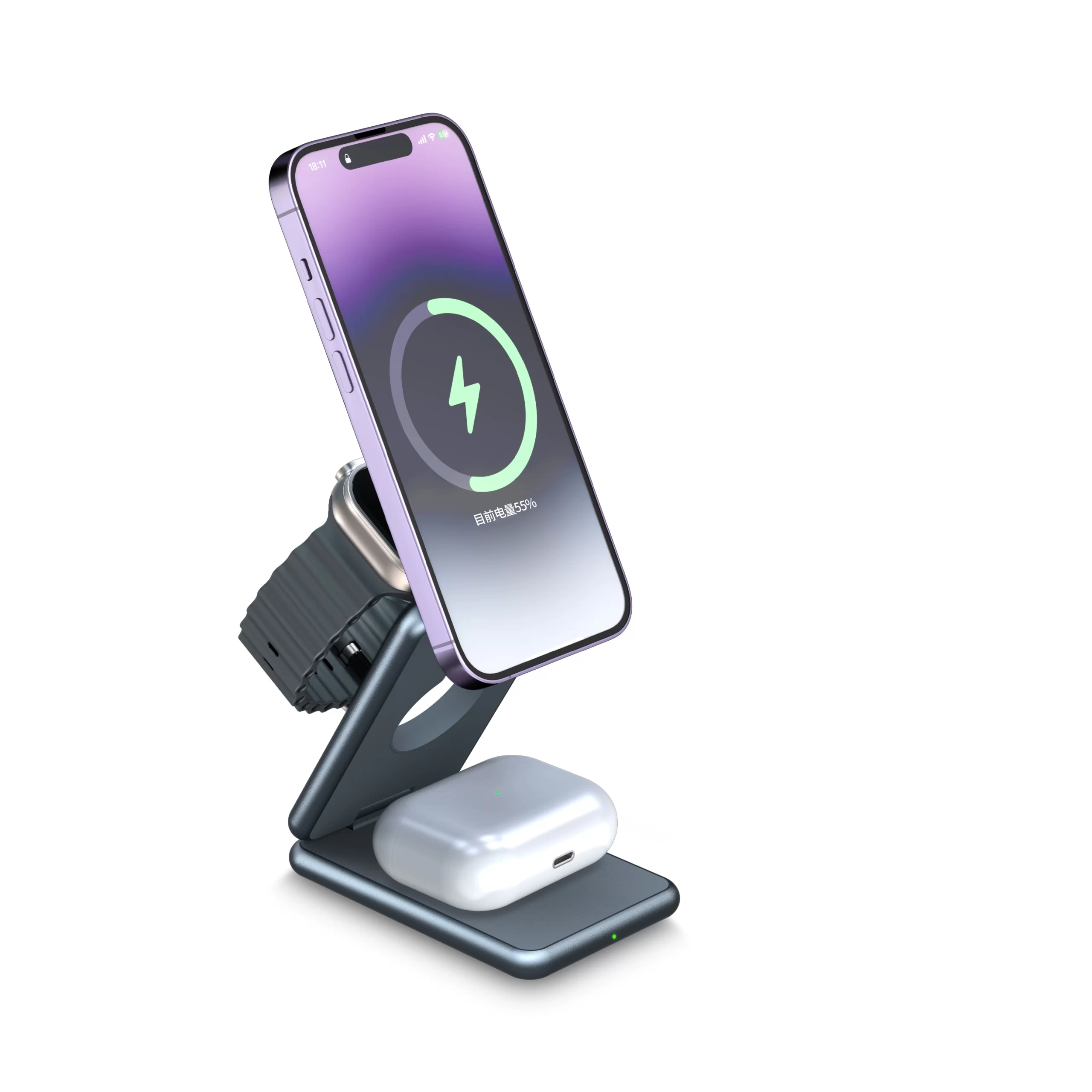 ساعة 3 في 1 قابلة للطي للشحن السريع، 6 سماعات لاسلكية