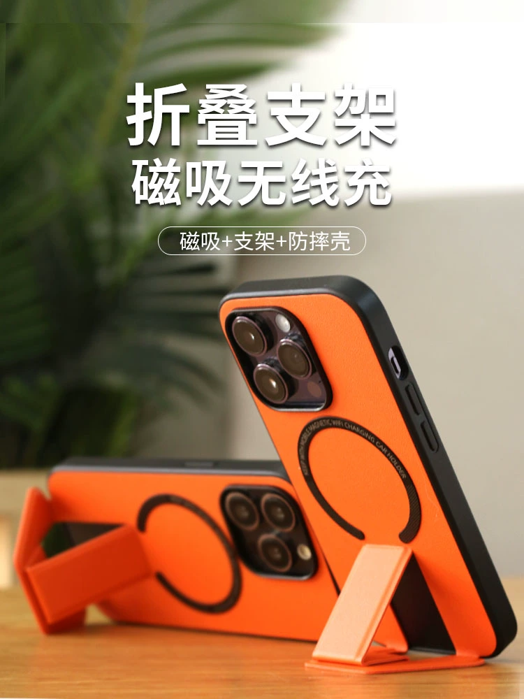 حامل الهاتف المحمول الجديد مناسب لحافظة الهاتف المحمول Apple 14 مع حامل 13ProMax غطاء حماية 15pro مغناطيسي ماجسيف شحن لاسلكي جلد 11 جلد مضاد للسقوط 12 نقطة XR قابلة للطي للرجال والنساء