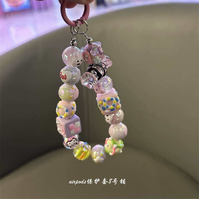 اعتصامات فتاة القلب كريم رسمت باليد الكرتون الخرز سماعات مجوهرات قلادة المفاتيح حقيبة الملحقات
