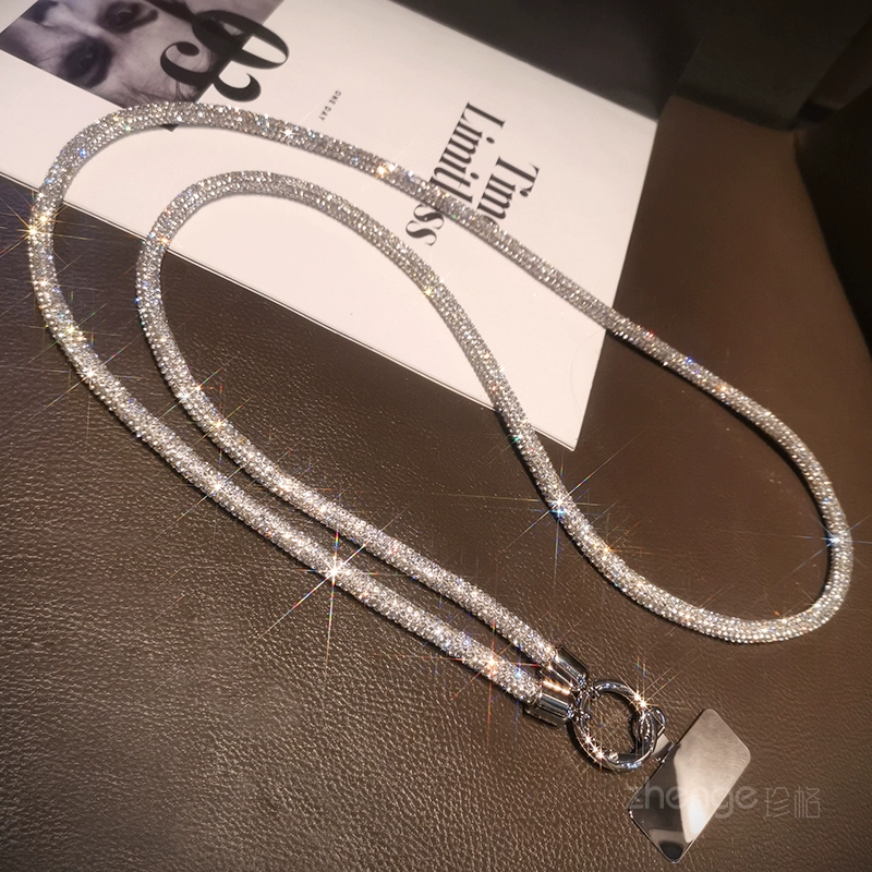 نموذج كروس بودي كامل الماس حبل سميك للسيدات إضافي بسيط عصري خفيف فاخر صغير عطر سلسلة هاتف محمول طويل معلق رباط عنق سلسلة خلفية جراب هاتف محمول عالمي حبال مشبك معدني مضاد للسقوط حبل الهاتف المحمول