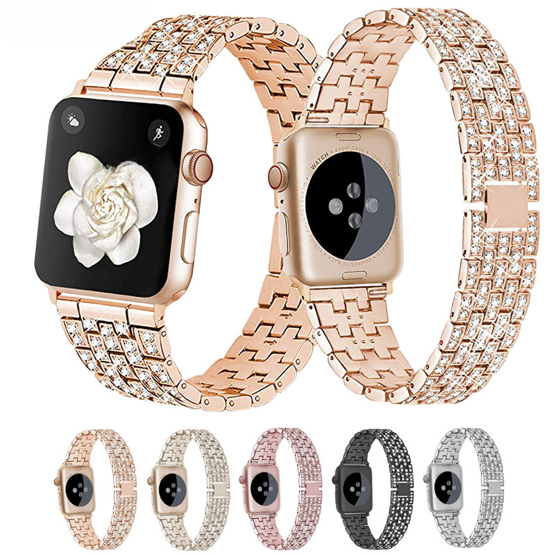 ينطبق على Apple watch1-8 Diamond Strap خمس خرزات كاملة من سلسلة معدنية ماسية وحزام فائق