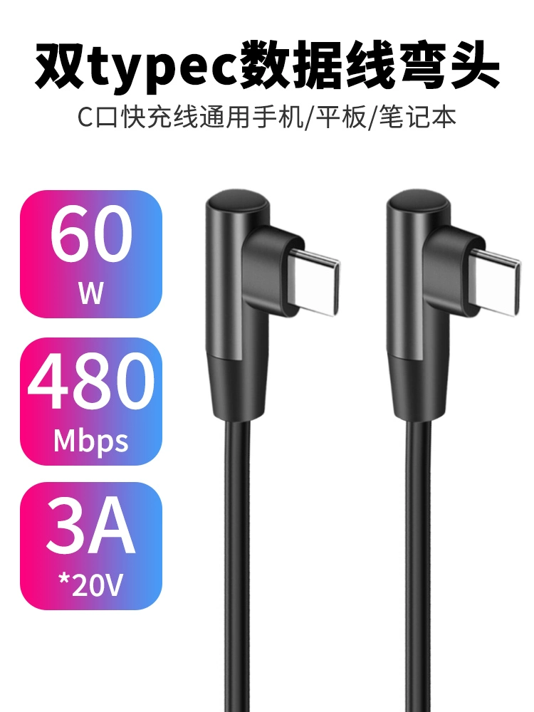 كابل بيانات tpyec مزدوج الكوع ذكر إلى ذكر ctoc منفذ مزدوج c شاحن الهاتف المحمول الكمبيوتر PD كابل شحن سريع 100 واط