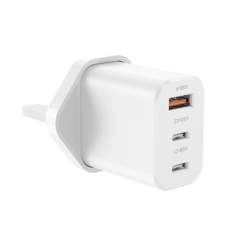 UKCA البريطانية المعتمدة في هونغ كونغ وماكاو والمملكة المتحدة PD30W رأس شحن سريع من نيتريد الغاليوم بثلاثة منافذ مناسب لهاتف Apple 15 المحمول وسماعات iPad
