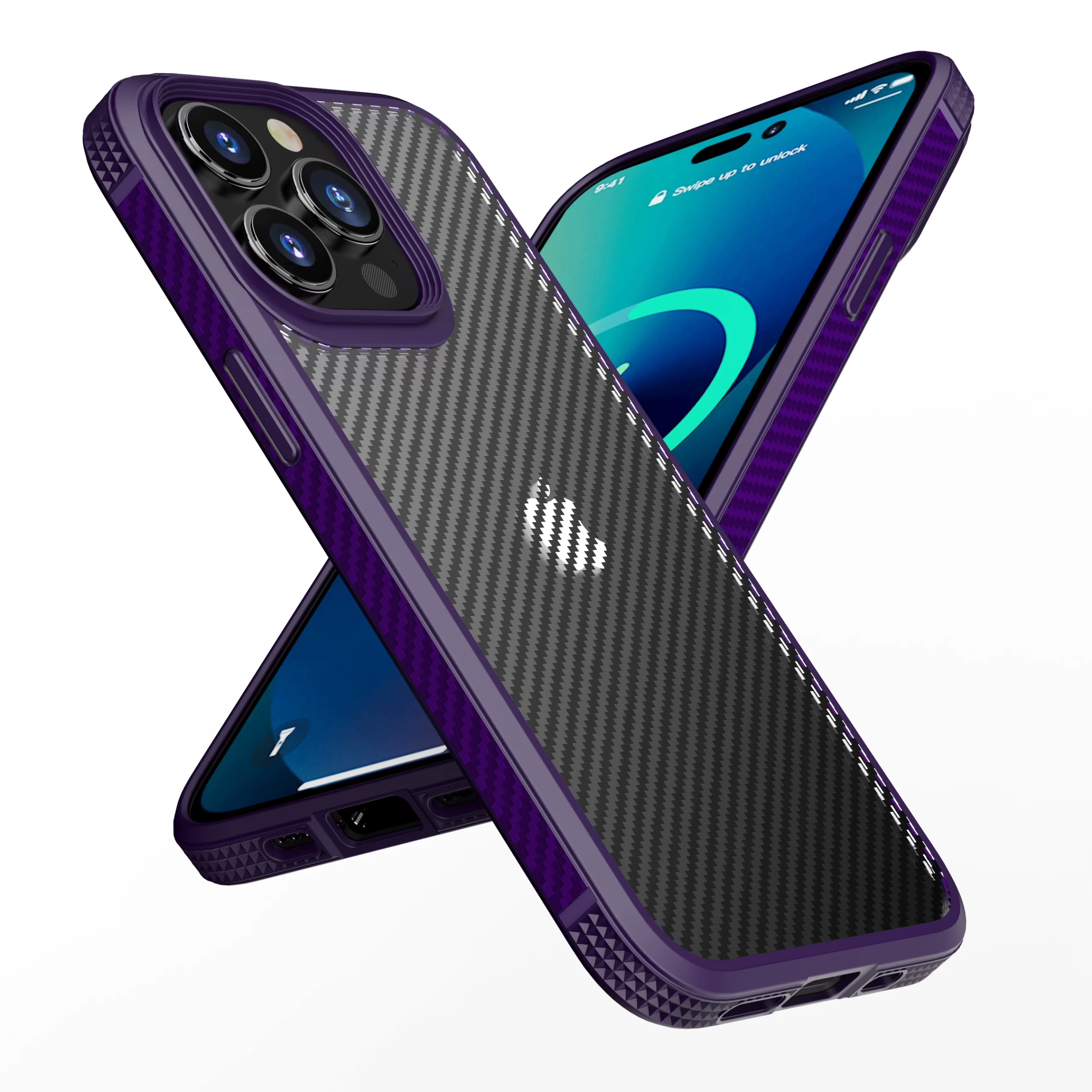 مناسب لجراب الهاتف المحمول iphone15promax من ألياف الكربون، جراب Apple 14pro أكريليك شامل 12 13pro max غطاء واقٍ مضاد للسقوط XR أرجواني داكن ليلاً