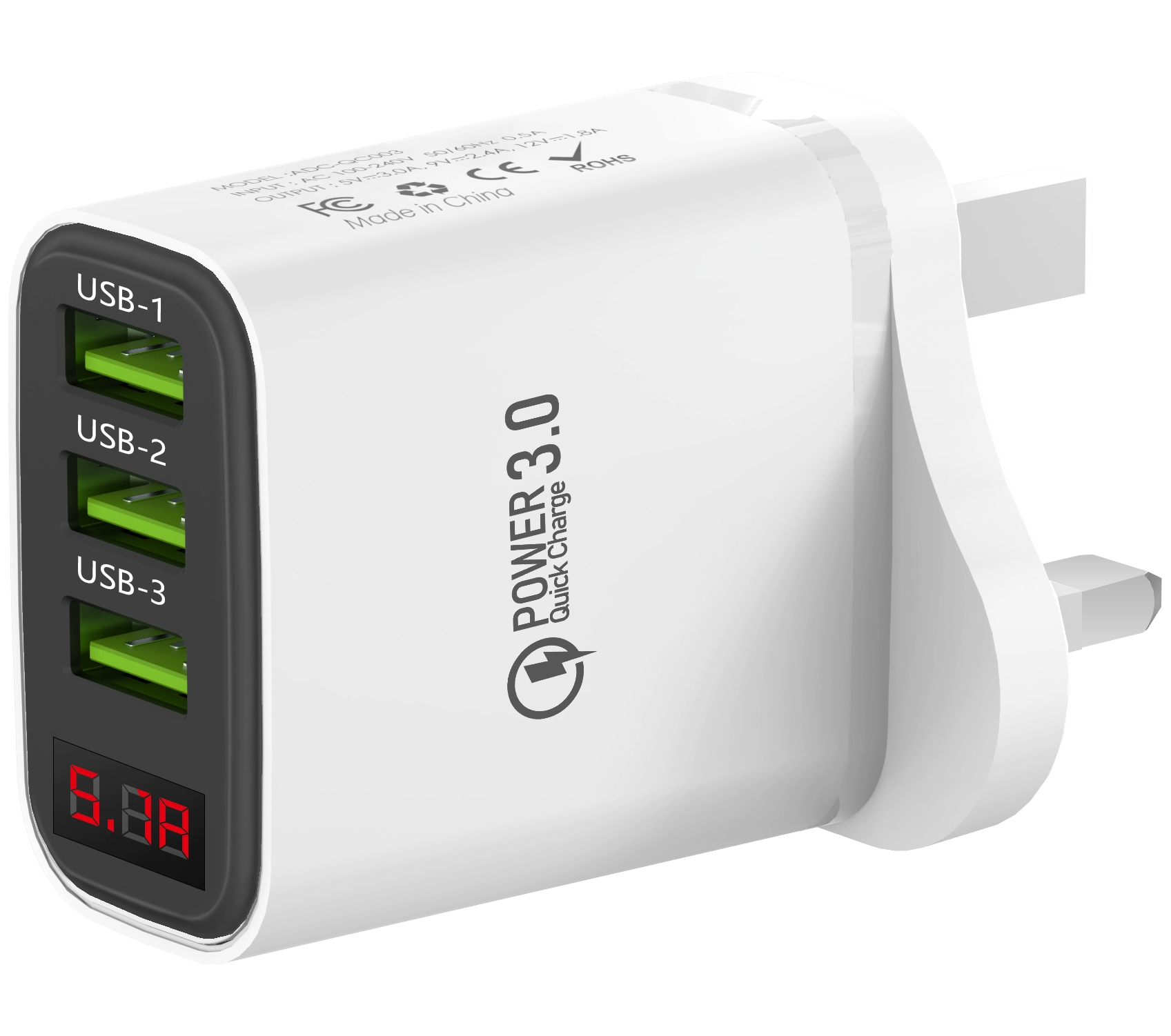 إصدار هونج كونج، رأس شحن الهاتف المحمول القياسي البريطاني، شاحن 3USB مع شاشة عرض، شاشة رقمية للشحن السريع، سفر في هونج كونج وماكاو