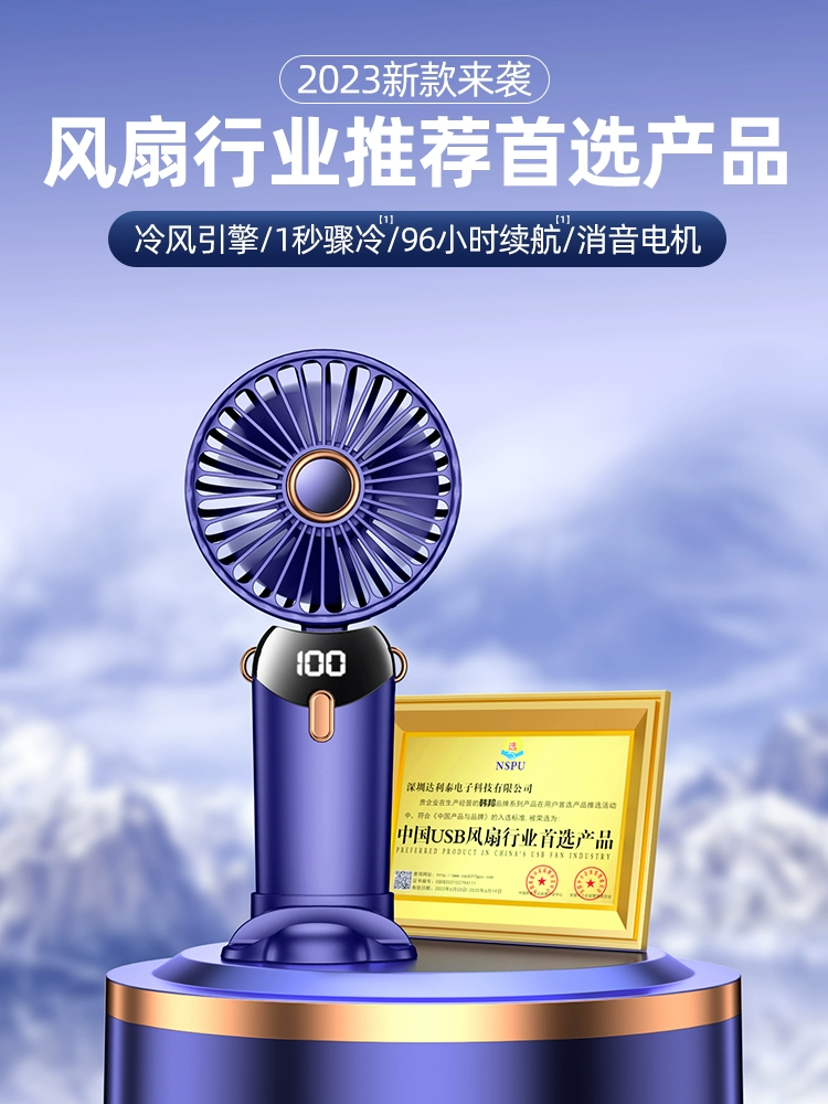 مروحة صغيرة محمولة باليد للرقبة قابلة لإعادة الشحن فائقة الهدوء وقابلة لإعادة الشحن عبر USB