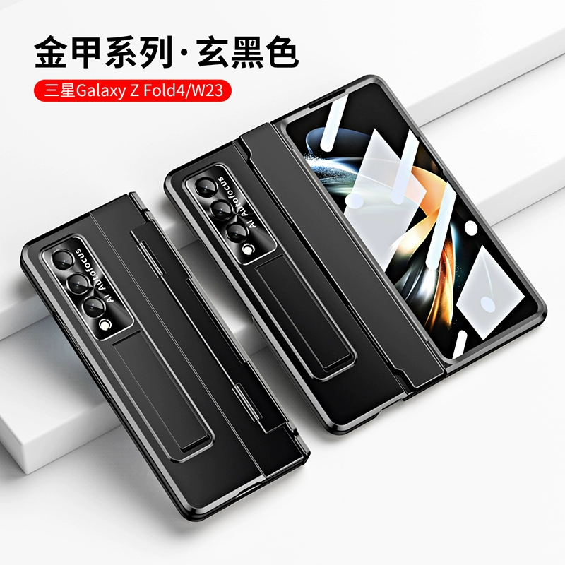 مناسب لحافظة الهاتف المحمول Samsung Fold4، وغطاء مفصلي مسطح عالي الجودة ذو لون خالص قابل للطي 3 وطبقة مدمجة zfold4 مخصصة Z Fold3 تأتي مع عدسة مقواة قابلة للطي 5 شاملة مضادة للسقوط 5 دعامة w23