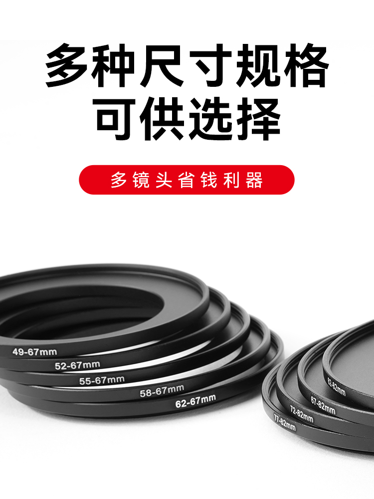 سبعة حرفيين 49 52 55 58 62 67 72 77 82 مللي متر عدسة مهايئ الفلتر حلقة كبيرة إلى صغيرة حلقة مهايئ