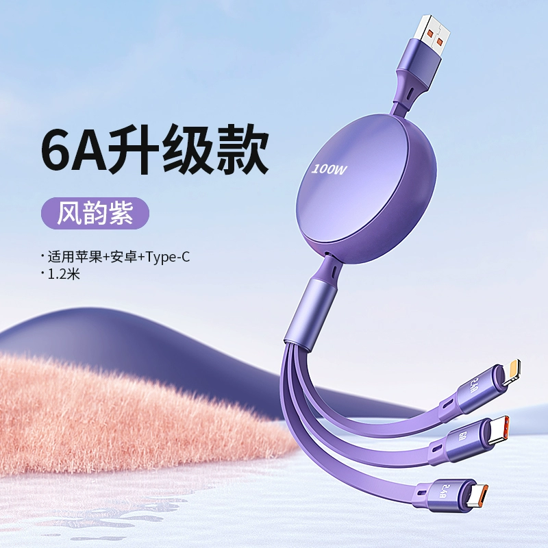 كابل شحن Shuotu ثلاثة في واحد، كابل بيانات شحن سريع من واحد إلى ثلاثة، ثلاثة رؤوس مناسبة لهاتف Apple وXiaomi والهاتف المحمول Android Typec، شاحن سيارة، iPhone متعدد الرؤوس، كابل عالمي تلسكوبي متعدد الوظائف 6A