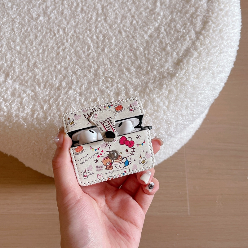 حافظة حماية مدمجة من الجيل الثاني من hello Kitty Cute airpodspro مناسبة لحافظة حماية سماعات الرأس من الجيل الثالث من Apple airpods2 جيل من قطعة واحدة من الجلد مع نفس الحبل لمنع السقوط