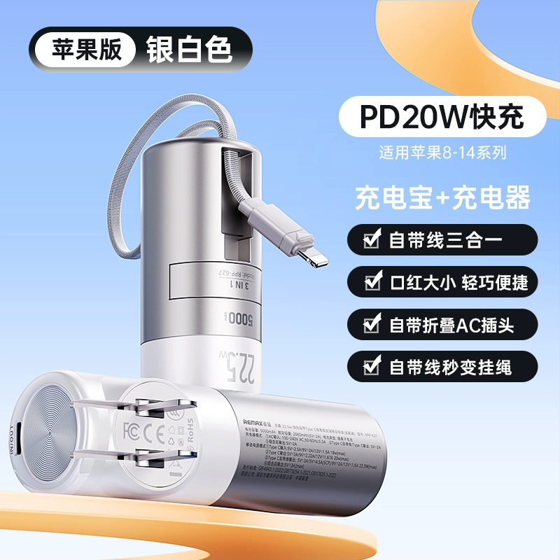 remax Ruiliang plug power bank comes with a line three-in-one 20000 mAh ultra-large capacity thin compact portable suitable for Apple Huawei Xiaomi fast charging mobile power official authentic flagship store