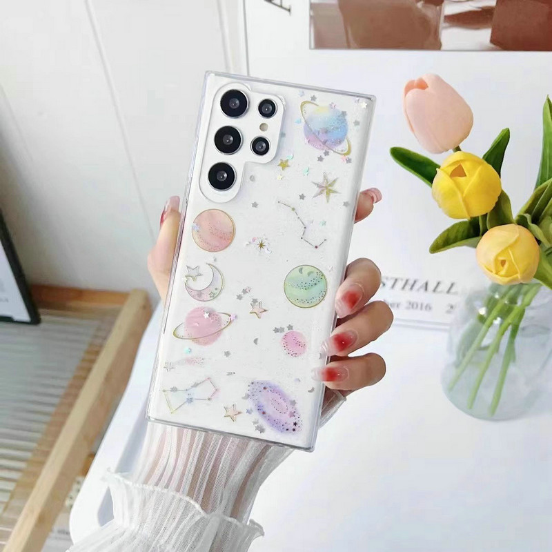 Starry Sky Planet مناسب لحافظة الهاتف المحمول Samsung s24 s23/s21+/s22 ذات الغلاف الناعم الشفاف s22 فائق العصرية s24 غطاء حماية فائق s24+ نموذج أنثى s23 شخصية أدبية فائقة s23FE