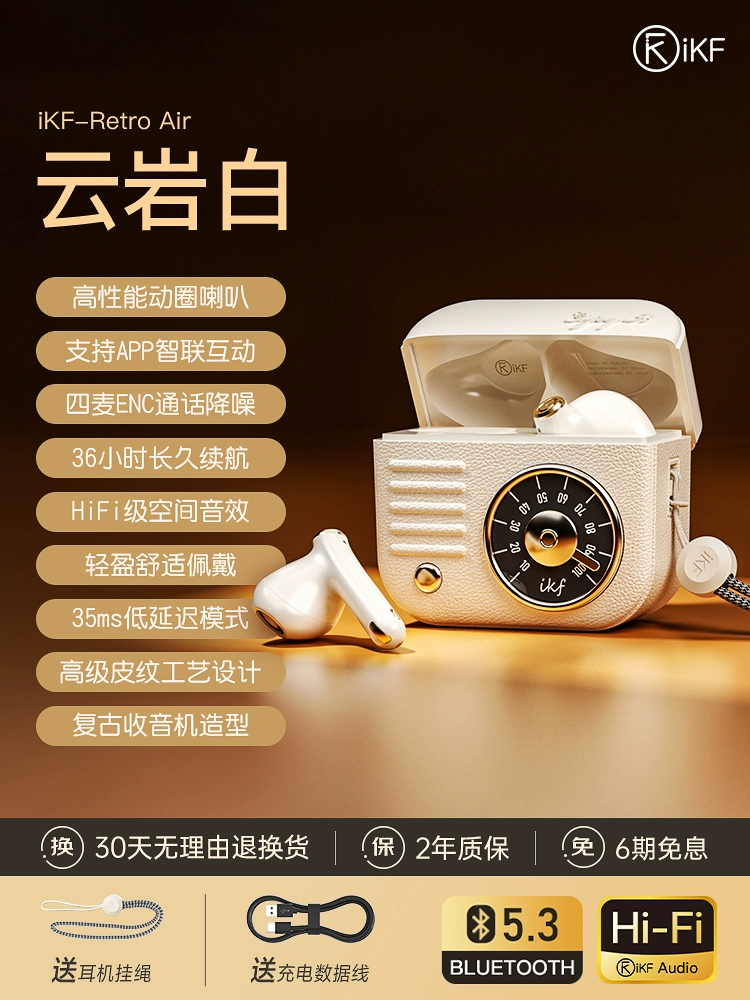 iKF Retro Air retro سماعة رأس بخاصية البلوتوث لاسلكية للحد من الضوضاء رياضية نصف داخل الأذن 2024 وضع استعداد جديد طويل للغاية