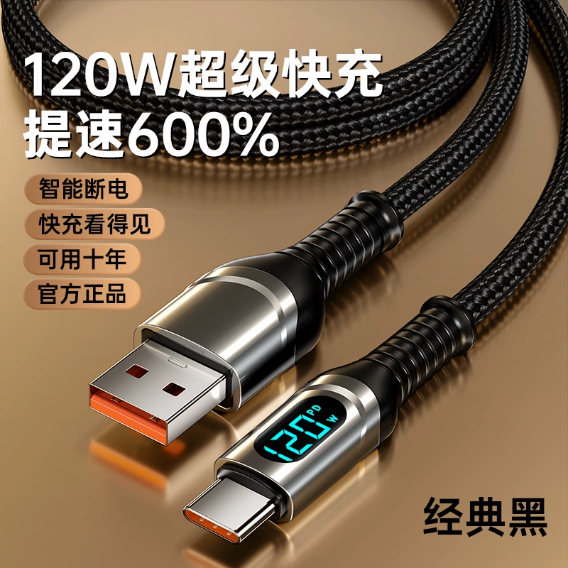 كابل بيانات شحن سريع للغاية 120 وات من النوع C، شاشة رقمية ذكية لإيقاف التشغيل، مناسبة لهاتف Samsung Huawei Xiaomi oppo Flash Charging vivo، واجهة كابل شحن الهاتف المحمول كاملة