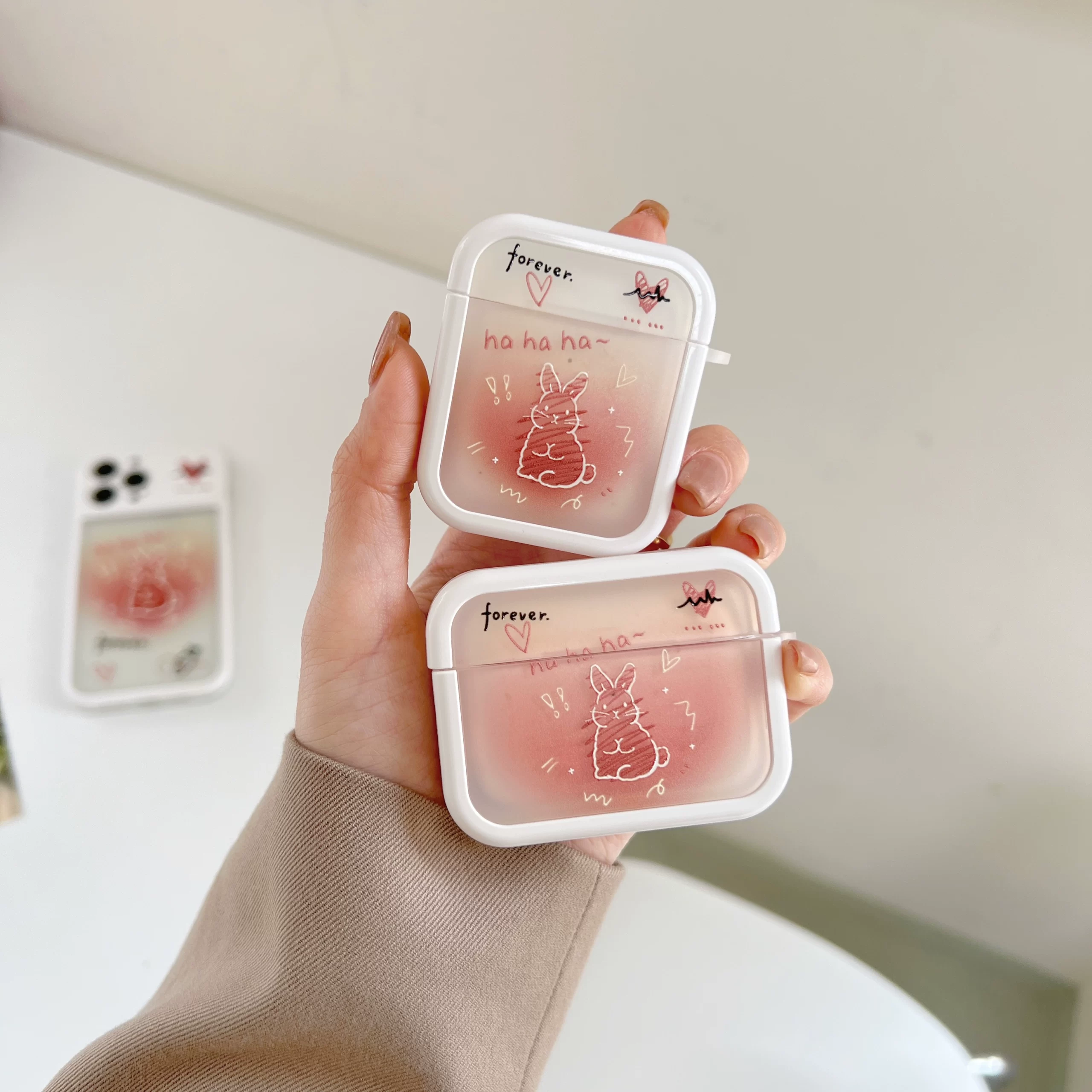 غطاء حماية Airpods3 على شكل أرنب جرافيتي باللون الوردي، غطاء حماية Airpod Apple الجيل الثاني برو سماعة رأس بلوتوث لاسلكية الجيل الثالث 1 مناسب لجيل aipods2، غلاف ناعم من الجيل الرابع 4