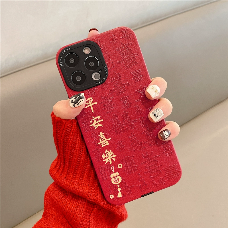 كل شيء يسير على ما يرام بالنسبة لحافظة الهاتف المحمول Apple 15promax iphone 14 عدسة شاملة 13 مضادة للسقوط 12 Dragon Year red 11 طراز جديد 14pro زوجين من جلد الخراف المنقوش أنثى 15 pro طراز العام الجديد