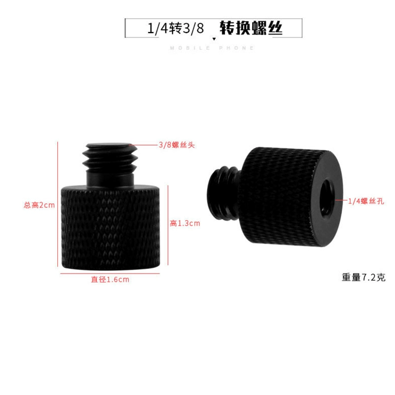 دعامة حامل ثلاثي القوائم للتصوير الفوتوغرافي، محول برغي 1/4، واجهة ميكروفون 3/8، ملحقات صور قابلة للإمالة من سبائك الألومنيوم، حامل برغي برأس متبادل في مشبك الهاتف المحمول، خيط القطر الخارجي 1/4 ثابت