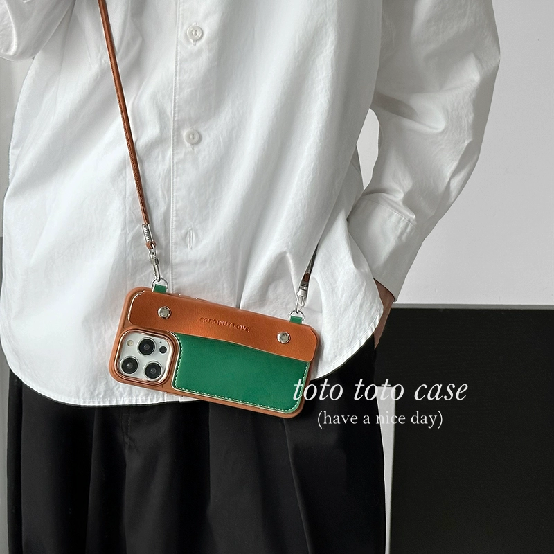 حقيبة بطاقات قطرية باللون البني والأخضر من Niche مناسبة لهاتف iPhone 13 Apple 14promax حافظة الهاتف المحمول 11 الجديدة 12/14pro الراقية 13promax جلد متباين