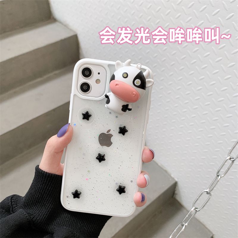 يمكن أن تصدر صوتًا وتضيء بقرة مناسبة لهاتف iPhone 15 promax جراب الهاتف المحمول 13 لطيف 12 بقرة بقرة ثلاثية الأبعاد Apple 14 pro max Cow Cry 11 Creative XS Nich xr Glue شفاف 14 Plus أنثى