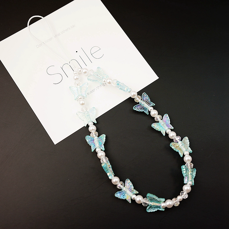 سلسلة هواتف محمولة مطرزة على شكل فراشة كريستال ملونة بطراز جديد لعام 2022 y2k حافظة هاتف محمول بحبل قلادة معصم على طراز ins للنساء