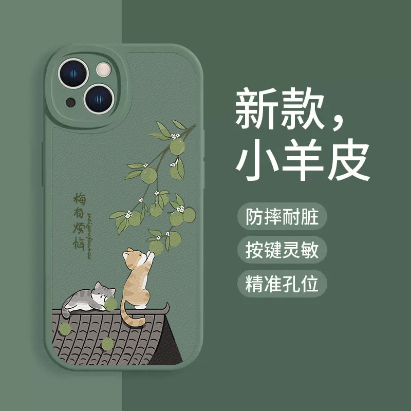 قطة إيطالية برتقالية كبيرة مناسبة لحافظة الهاتف المحمول Apple 15promax iphone14 الجديد 13 mini Chinese style 12 لطيف 11 رسوم متحركة xs max جلد الخراف xr نص 8plus مضاد للسقوط 7 ناعم 6
