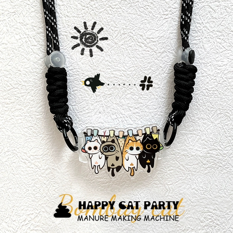 HAPPY الأصلي لطيف حمامات الشمس القط سلسلة الهاتف المحمول الخلفي كليب الحبل المحمولة يمكن ارتداؤها عبر الجسم أبل وأندرويد العالمي