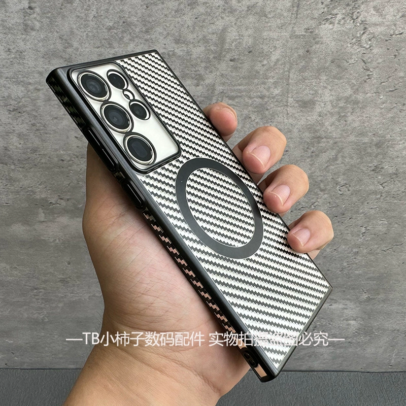 حافظة حماية من ألياف الكربون المطلية بالكهرباء لهاتف سامسونج S24U مع جاذبية مغناطيسية