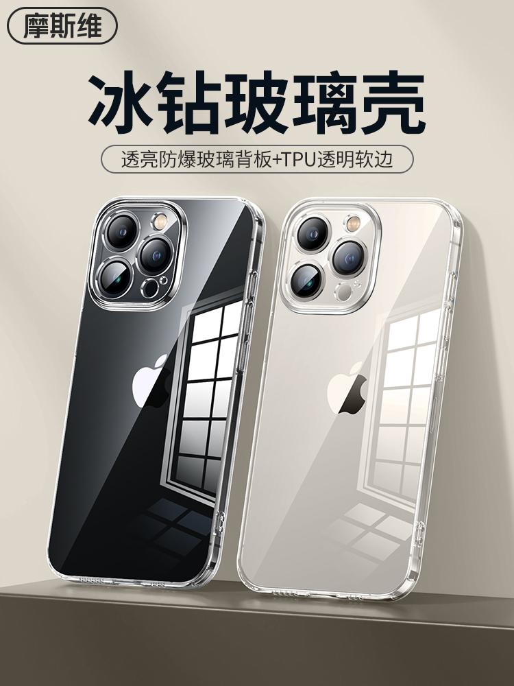 Mosvi مناسب لحافظة الهاتف المحمول Apple 15 iPhone15ProMax شفافة 13 من الزجاج المقسى 14Pro غلاف صلب ذو حافة ناعمة جديدة 12 غطاء حماية صغير مضاد للسقوط 11 عالي الجودة 15Plus للرجال
