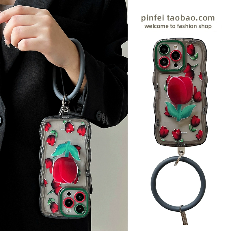 مناسبة لحافظة الهاتف المحمول Apple 15promax iphone14، غطاء حماية شامل مضاد للسقوط 12، 11، رمادي شفاف مموج، xsmax، سوار قوس توليب x متقدم 13، شفاف ناعم 14plus أنثى