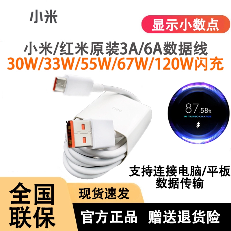 كابل بيانات Xiaomi الأصلي كابل بيانات Xiaomi 3A كابل بيانات Xiaomi 6A كابل بيانات Xiaomi الأصلي مع النقطة العشرية 30 واط / 33 واط / 45 واط / 55 واط / 67 واط / 120 واط شاحن كابل بيانات