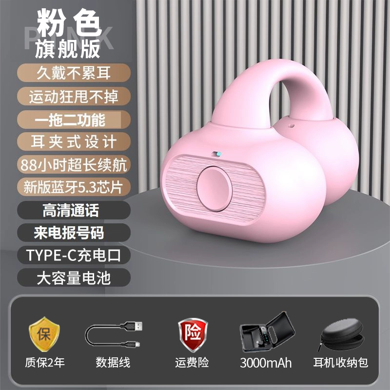 سماعة رأس بلوتوث ذات توصيل عظمي حقيقي، نوع مشبك غير داخل الأذن، عمر بطارية طويل جدًا، تشغيل الأعمال 2023، مكالمة جاهزة جديدة