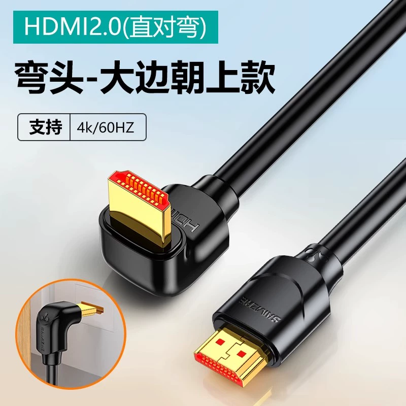Shanze HDMI خط الكوع 4K عالي الوضوح 90 درجة زاوية قائمة على شكل حرف L جهاز فك التشفير للاتصال بتلفزيون الكمبيوتر
