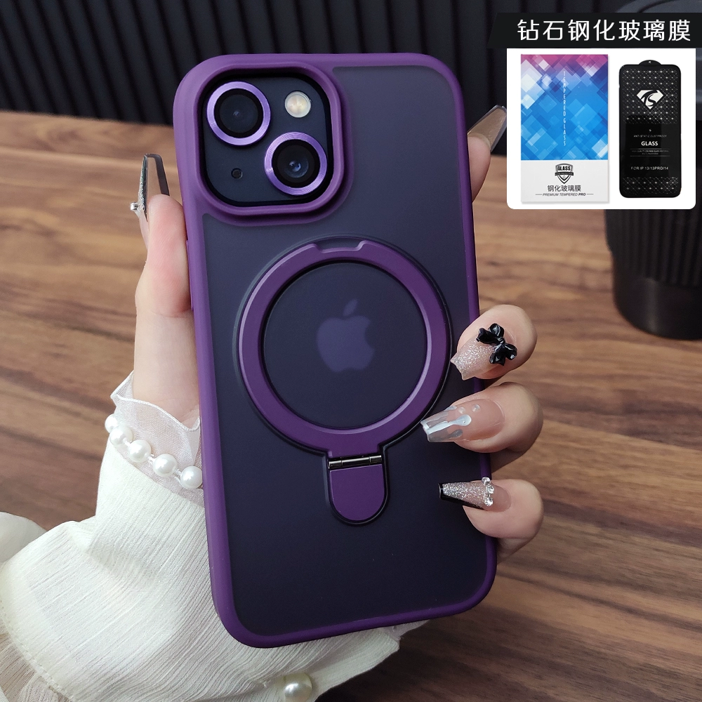 مناسب لجراب الهاتف المحمول Apple 15 iPhone 14 Pro Max، ملمس جلدي غير لامع 13 Pro يأتي مع فيلم عدسة معدني 12 دعامة معدنية مغناطيسية شبه نفاذية مضادة للسقوط قابلة للطي 11 سبيكة سيليكون مضادة لبصمات الأصابع