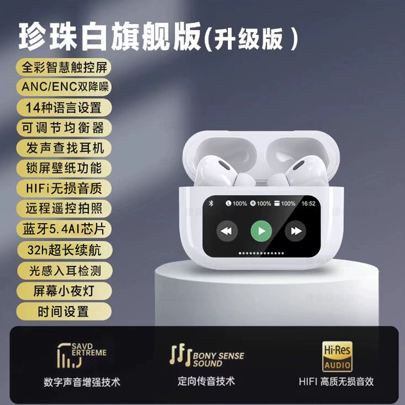 سماعة رأس Huaqiangbei لاسلكية تعمل بالبلوتوث تعمل باللمس وشاشة ذكية مع شاشة عرض داخل الأذن 2024 جديدة لتقليل الضوضاء وجودة عالية