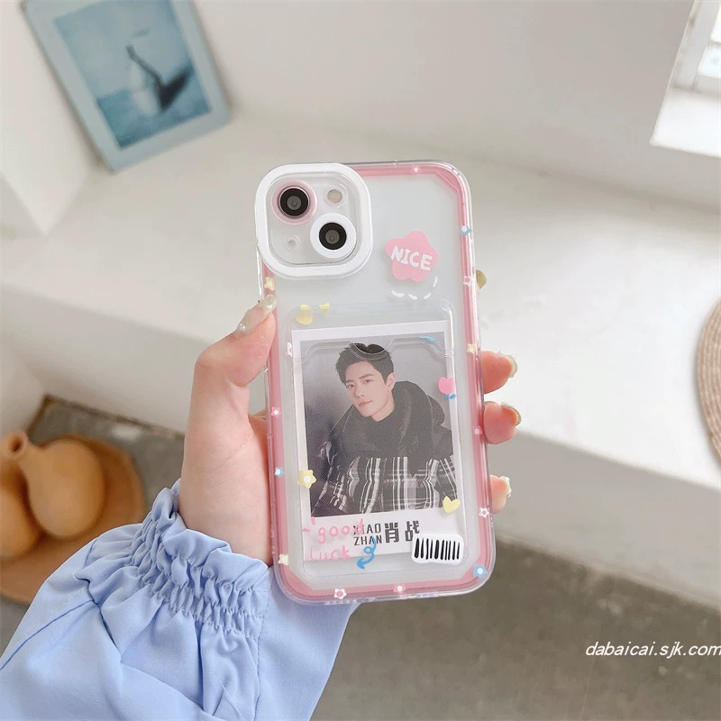 حامل بطاقة صور مبتكر مناسب لهاتف iphone12promax apple 15/14/11/13 جراب هاتف محمول xr للرجال والنساء x/xs ناعم 78p حامل بطاقة شفاف مضاد للسقوط