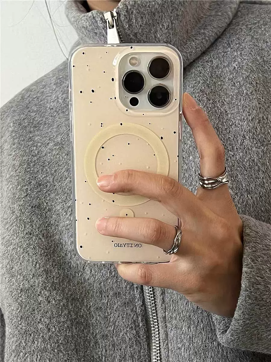 حافظة هاتف محمول كورية مثيرة للغاية باللون الأصفر الفاتح وبقع الحبر وحامل مغناطيسي مناسبة لهاتف iPhone 15promax وحامل 14promax Apple 13 pro الشامل 12 غطاء واقٍ مضاد للسقوط