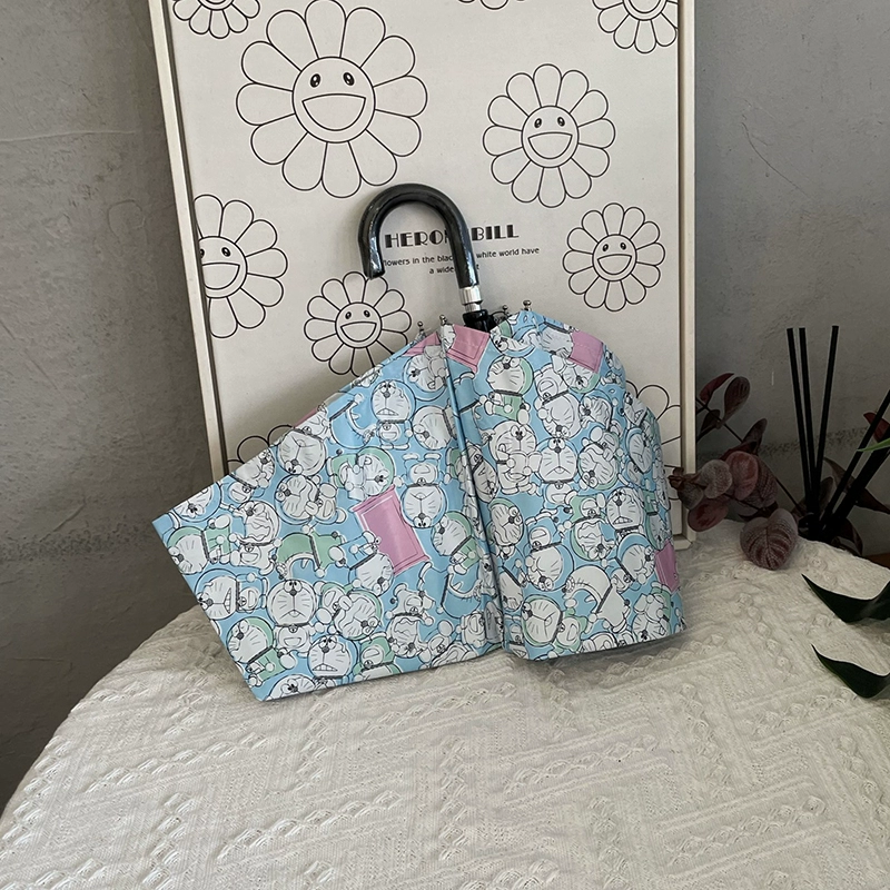 مظلة قابلة للطي للطلاب ذات غرض مزدوج من الرسوم المتحركة اللطيفة مع خطاف منحني كبير