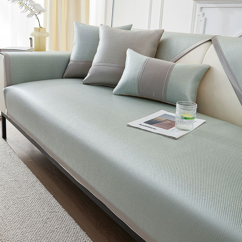 غطاء أريكة صيفي مغسول من الحرير الجليدي وبساط مضاد للانزلاق