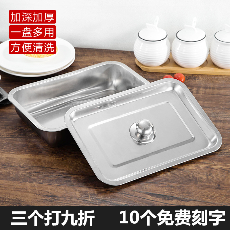 صينية من الفولاذ المقاوم للصدأ مع غطاء لوحة مستطيلة من الحديد لوحة مربعة من الفولاذ المقاوم للصدأ لوحة أرز على البخار للاستخدام التجاري