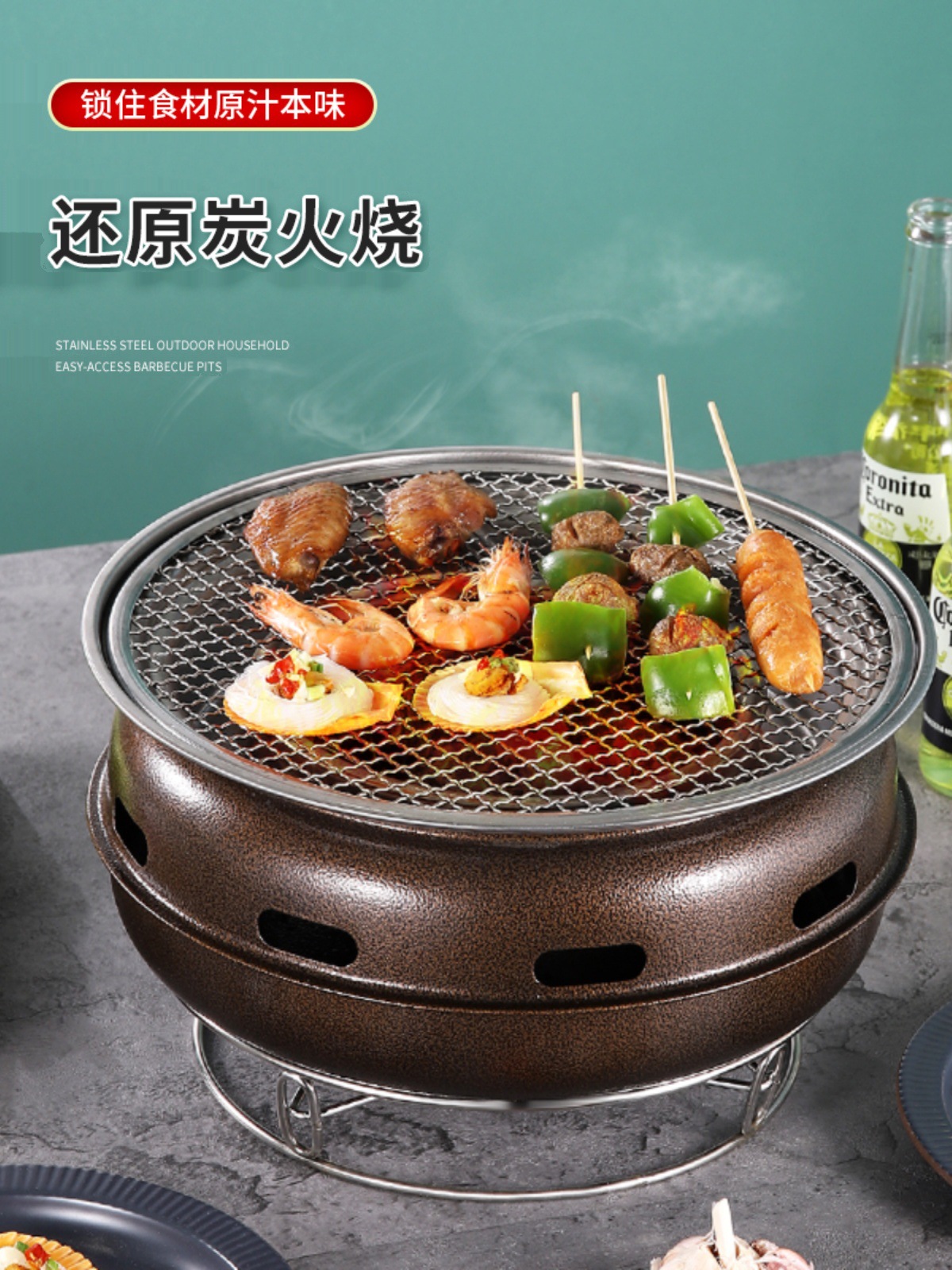 0WYV موقد الفحم متعدد الوظائف فرن الشواء الكورية رف الشواء الفحم المنزلية خالية من الدخان في الهواء الطلق غير عصا موقد الشاي القلي