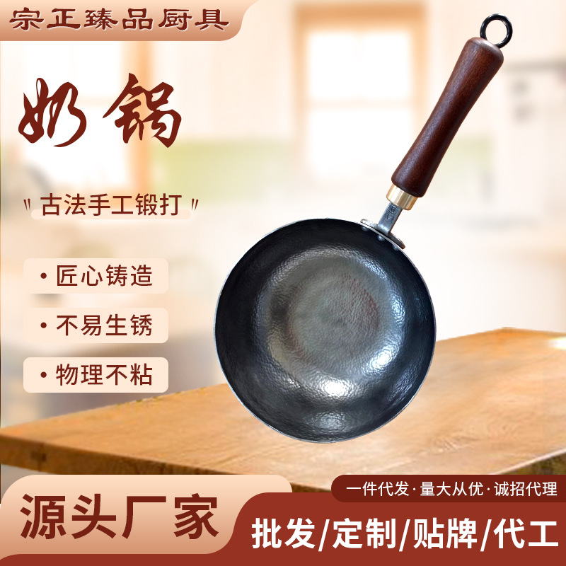 Zhangqiu وعاء حديدي غير مطلي وعاء حليب صغير صغير الطراز القديم وعاء حديد صغير المنزلية البيض المقلي المطاوع يدويا غير عصا وعاء قدر للحليب (لبّانة)
