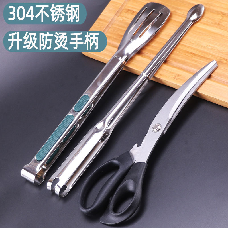 مجموعة مقص الشواء على الطراز الكوري، مقص مطبخ متعدد الوظائف، 304 مشبك طعام من الفولاذ المقاوم للصدأ، أدوات الشواء المنزلية
