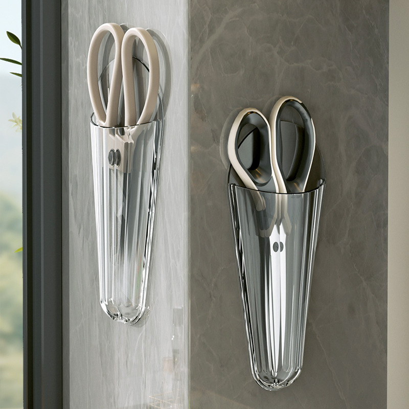 رف مقص متعدد الوظائف للمطبخ مثبت على الحائط مع مقص لاصق ورف تخزين واقٍ وصندوق تخزين خالٍ من اللكم